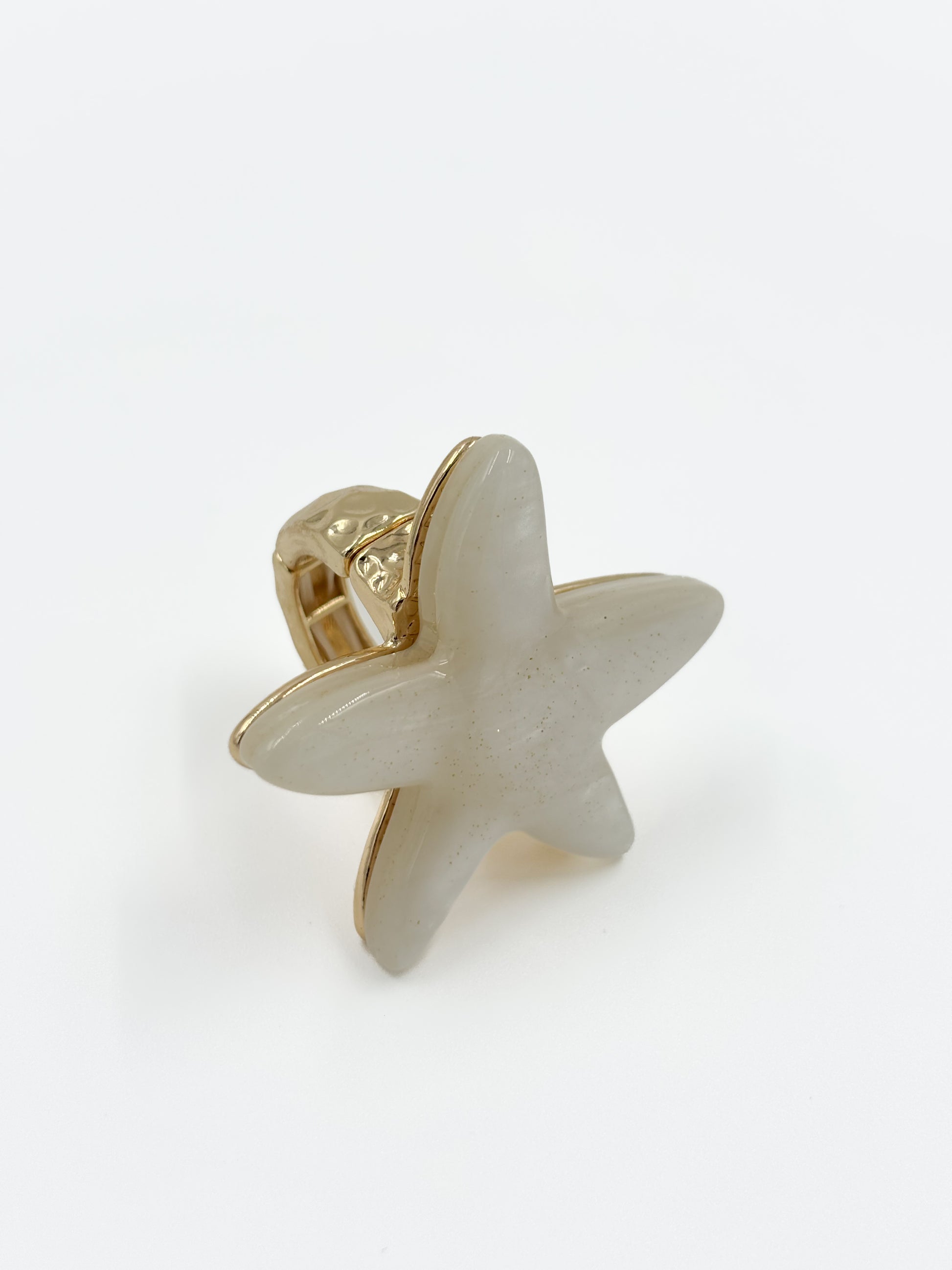 Inspirado en las formas suaves y orgánicas que deja el mar en la orilla, el Anillo Arena combina textura, luz y color de una manera muy especial. Su estructura dorada y su estrella en acabado nacarado lo hacen único.