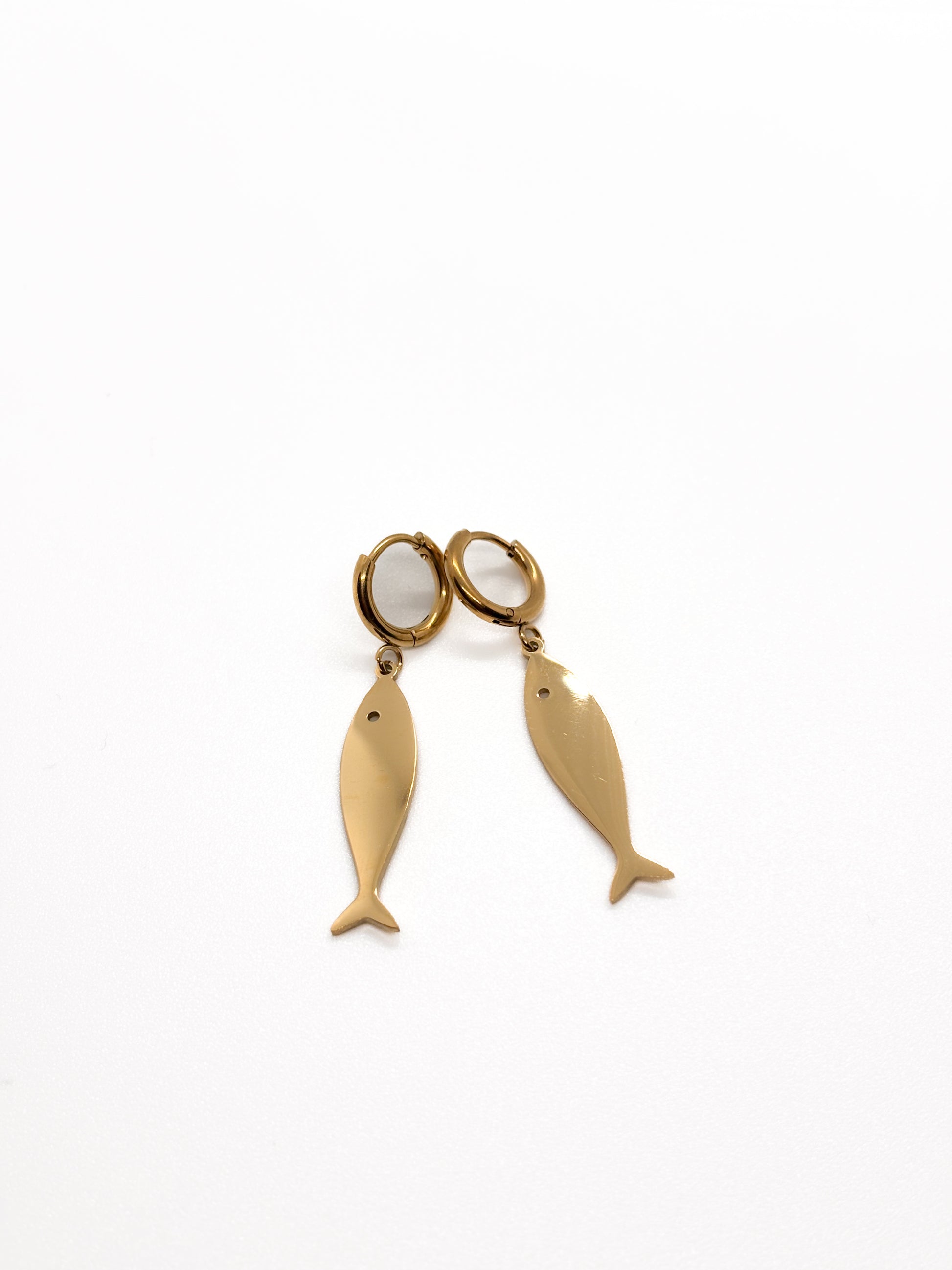 Un homenaje delicado a la vida del mar. Estos pendientes con forma de pez capturan la belleza del océano con un diseño sutil y sofisticado. Hechos de acero inoxidable, resisten el tiempo como las mareas y brillan con cada movimiento.